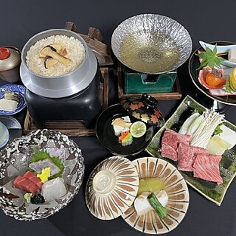 熟練の職人が腕を振るう、秋の特選会席です。柿玉子や胡麻豆腐などの前菜から始まり、紅葉鯛と秋茄子餡かけ、京都牛しゃぶしゃぶ鍋など、旬の食材の旨みを最大限に引き出しました。特別な日の接待や宴会にふさわしい、珠玉のコースをご堪能ください!
