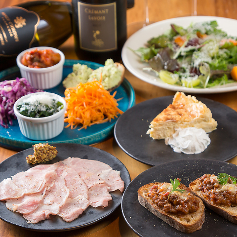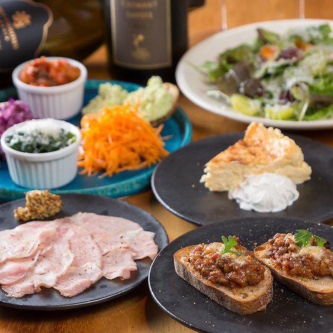 店主厳選の豊富なワインを取り揃えており、その一本一本に最も合うように考え抜かれた料理を各種ご用意しております。恋人や同僚など一緒に来た人とシェアできるメニューも多数!前菜からメイン、デザートまで、ワインとの最良のマリアージュをお楽しみください。