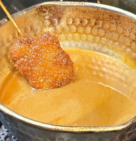 どて焼の味噌に揚げたての串カツをくぐらせた新メニュー