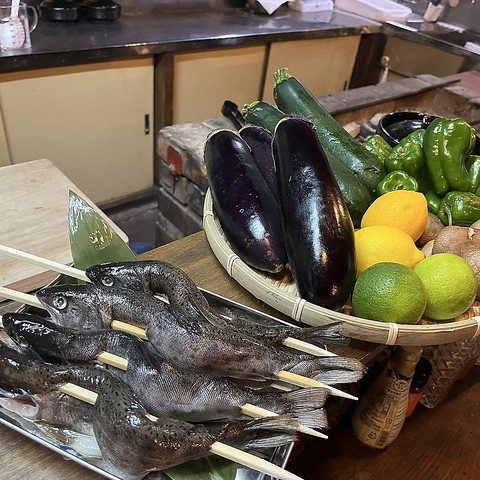 当店では、その日に仕入れた新鮮な魚介とお肉を炉端で焼き上げます。何が出るかはお楽しみ♪