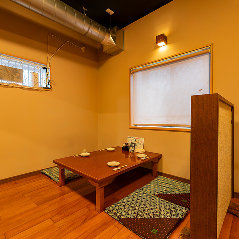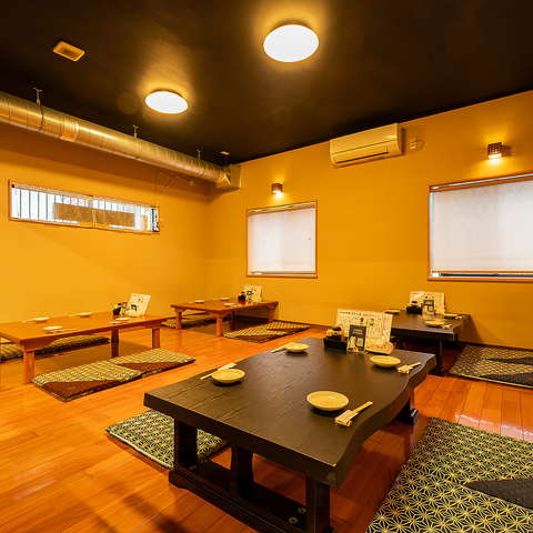 足を伸ばしてゆったり過ごせる座敷席を完備。落ち着いた空間で、仲間や家族との団らんにぴったり。