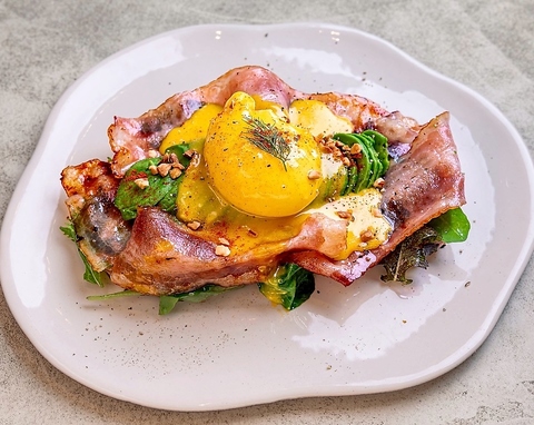 目の前に広がる沖縄の美しい景色を楽しみながらお召し上がりいただける、贅沢なエッグベネディクトです。ベーコンとアボカドを乗せていて、ボリューム感ばっちりの当店自慢の逸品◎特別な旅の朝や、優雅なブランチに最適です。開放的な空間で、日常を忘れさせる至福のお時間をご堪能ください!