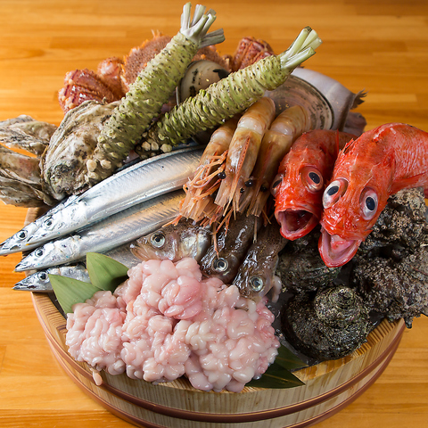 全国から仕入れる天然魚は鮮度抜群◎生け簀から使う魚介もございます。刺身の七種盛り合わせは感動の逸品!