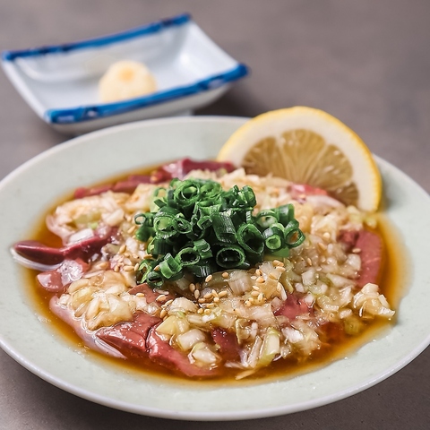 品切れの日も多い1人1皿頼まれるお客様もいる大人気メニュー!低温調理でじっくり火入れをした新鮮なレバーと特製ネギだれでお酒も進む逸品。