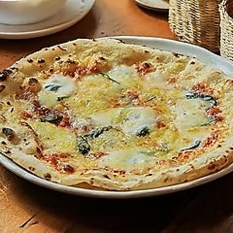 トマトの酸味とモッツァレラのまろやかさ、バジルの香りが重なる王道の一枚。亀岡の自然に囲まれた当店で、ナポリ伝統の味をお楽しみください。使用するモッツァレラは、京丹波の牧場で毎朝つくられる 1日限定100個の手作りチーズ。職人がひとつひとつ丁寧に仕上げた特別な逸品です。