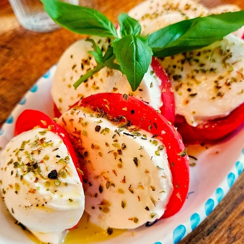 一日に百個しか作られない手づくりのフレッシュモッツァレラ。熟練の職人が毎朝仕上げるその味わいは、濃厚でありながら驚くほどやさしく、口の中でふんわりとほどけます。旬に合わせて厳選した完熟トマトの瑞々しく力強い甘みと酸味が、モッツァレラのまろやかさを引き立て、奥深い調和を生み出します。