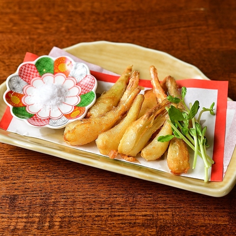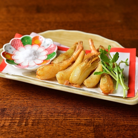 沖縄居酒屋メニューの大定番!サクサク衣に、風味豊かな島らっきょうの天ぷら◎