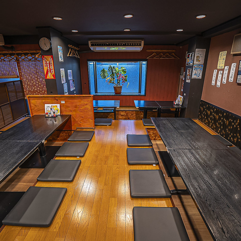 2階は木を基調にした全席小上がりの座敷で、仕切りがないため開放感に満ちた空間が広がっています。座敷ならではのくつろぎ感を味わいながら、4名様から30名様を超える宴会にも対応可能。友人や同僚との集まり、家族のお祝い事など、大人数でもゆったりと過ごせるお席をご用意しています。