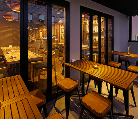 【テラス席も】開放感抜群のテラス席で、炭火焼き鳥と藁焼き料理を楽しむ贅沢なひとときをお過ごしください。