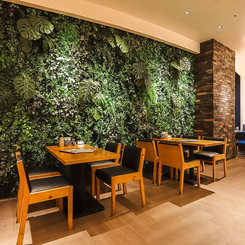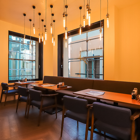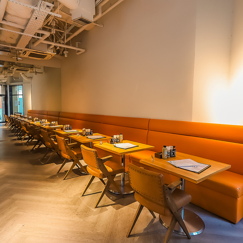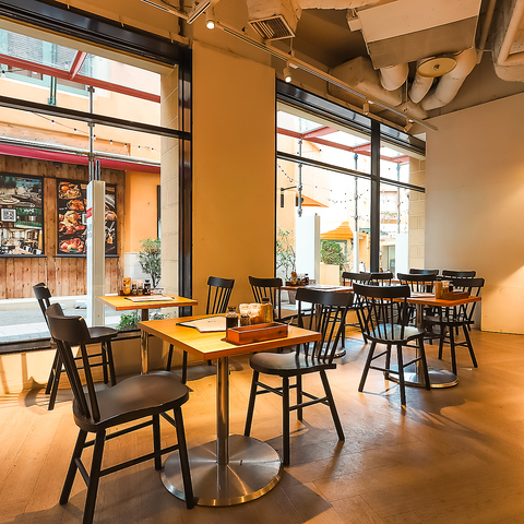おしゃれさと明るさが融合した空間で、リラックスしたひとときをお過ごしください☆ 2人掛けのテーブルが多数あり、ちょっとしたデートにも最適です♪ もちろん、大人数での集まりも大歓迎!2名掛けテーブルの他にもソファー席やカウンター席などお席の種類も豊富です。お客様にあわせたお食事を最適なお席でご利用下さい☆