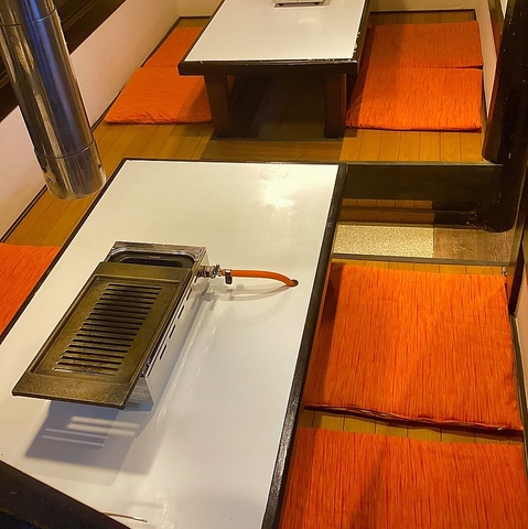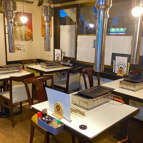 温かい光に包まれた外観は、名代たれ焼肉の親しみやすい雰囲気を醸し出しています。店内は、木を基調とした落ち着いた空間。靴を脱いで寛げる掘りごたつ席(6名席×2、4名席×2)や、テーブル席をご用意。お子様連れのご家族から宴会まで、ゆったりとお過ごしいただけます。