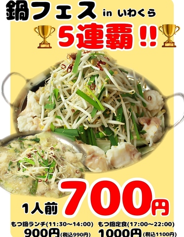 当店のもつ鍋が鍋フェスでグランプリに選ばれました!何と言ってもこだわりの和牛だしのスープとプリップリの牛ホルモン!自家製の旨辛味噌を加えればもうヤミツキ間違いなしです!嬉しい〆のラーメン付きなので最後まで美味しくいただけます。焼き肉屋さんが本気で作った牛もつ鍋を是非お召し上がりください!