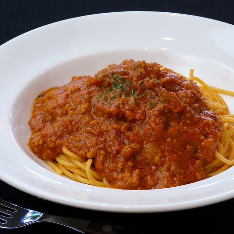 マテラポーク100%のひき肉を贅沢に使用した特製ミートパスタ◎手間暇かけて煮込まれた熟成ミートソースが、味わいを引き立てます☆心も満たされる、特別な食事の時間をお楽しみください♪