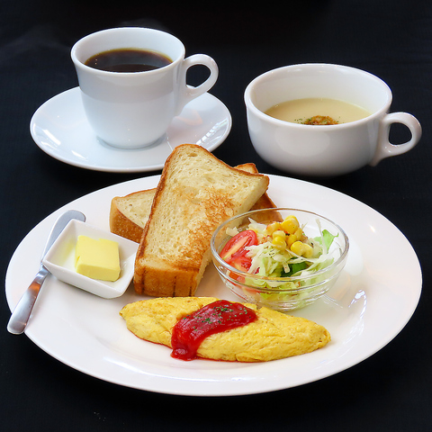 ふんわりオムレツにサクサクのトースト、セットには、彩り豊かなサラダ、温かいスープ、そしてお好きなソフトドリンクが選べます◎心地よいひとときを楽しむために、モーニングセットをぜひご利用ください♪
