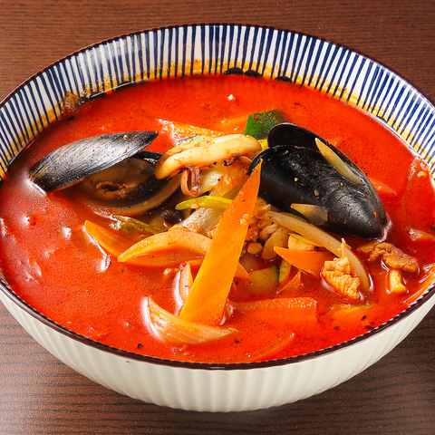 旬のプリプリ大粒牡蠣を贅沢にトッピングした至福の一杯。噛むほどに溢れる濃厚な牡蠣の旨味が、魚介ベースのピリ辛スープに溶け出し絶妙なコクを生み出します。野菜の甘みとスパイスの刺激が後を引き、体の芯から温まること間違いなし。冬の味覚を存分に楽しめる、スタミナ満点の美味しさをご堪能ください。