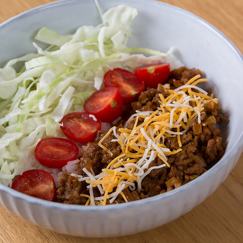 当店では絶品メニューを揃えています♪画像のス「タコライス」は、パイシーな香りと味付けをしたひき肉とチーズ、フレッシュ野菜の豊かな一皿!ピリッとしたソースが食欲をそそります。はたまた「ロコモコ」は、肉汁あふれるハンバーグに半熟卵、特製ソースをかけた王道メニューです♪カフェやディナーに人気の一品です♪