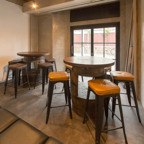 非日常感を演出するバレルテーブル(樽のテーブル)が目を引くテーブル席は、円卓なので複数人で囲みやすく会話も弾みます♪二次会利用にも最適で、落ち着いてじっくりと話し合いたいシーンにおすすめです。お洒落な店内で、ゆったりとした時間をお過ごしください。