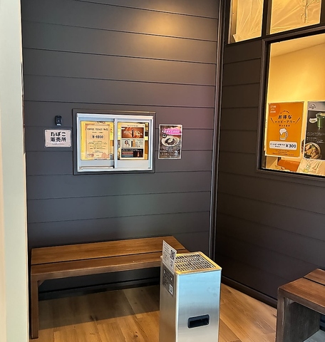 喫煙室には小窓とインターホンを設置。インターホンを押していただくと、スタッフがその場でタバコの販売に対応いたします。「席を立たずに購入できる」喫煙者目線のサービスも当店の特長です。