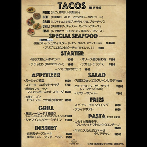 | 店名 | Tacos&Bar YOTTE YO |