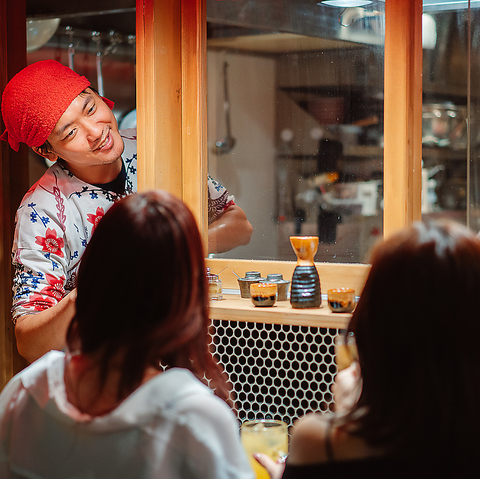 お一人様でも気軽に立ち寄れるカウンター席を中心に、少人数でのご利用に最適なテーブル席をご用意しております。また、開放感あふれるオープンテラス席もございます。気候の良い時期には、テラス席で炭炙りとドリンクを楽しむのもおすすめ◎
