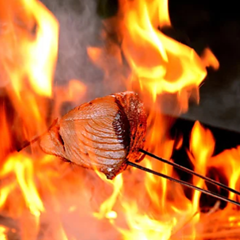 芳ばしい藁の香ばしさと、炭火の力強い熱で焼き上げた魚や肉! 一度食べたら忘れられない感動の味!