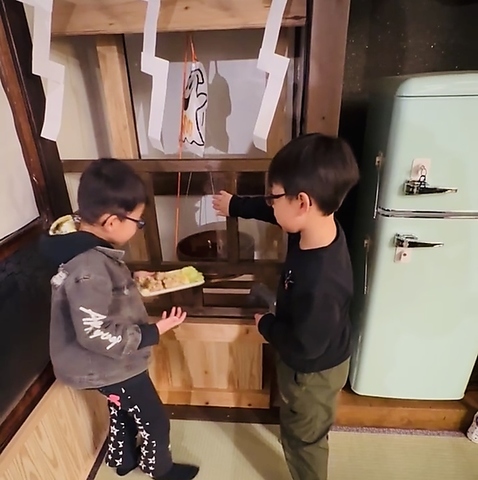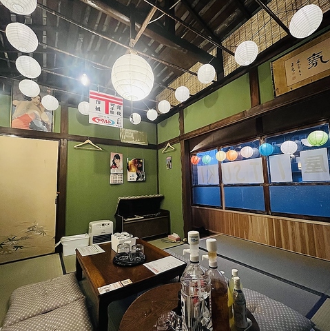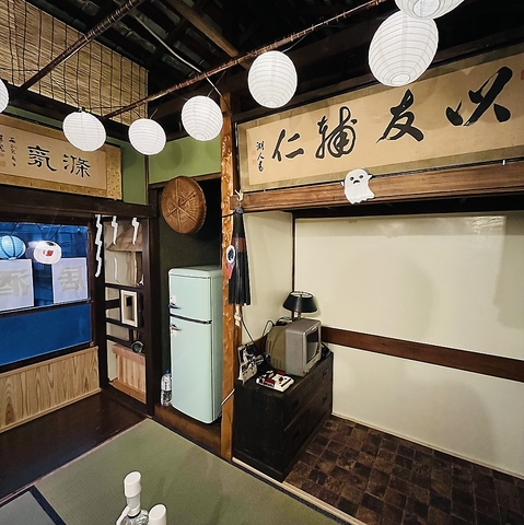 1階とは雰囲気の違う昭和にタイムスリップできる貸切部屋がDIYで増設オープンしました。中高年には懐かしく若い方には新鮮でレトロなお座敷。お子様連れでも気兼ね無く利用できる部屋でキッズスペース完備、滑車のついた古井戸が1階からお料理を引き上げてくれます。完全個室のプライベート空間なのでくつろいでお酒や料理をお楽しみください。
