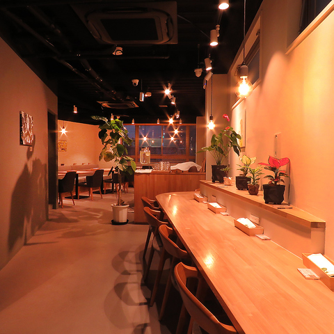 | カウンター | 8名様×8 | カウンター席は、デートでのご利用やお一人様でのご来店も歓迎いたしております。観葉植物がそこかしこに飾られた、ほっと一息つける癒しの空間をぜひご堪能ください。 |