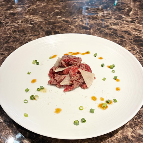 自信を持ってご提供するのは、店主厳選のお肉。和牛に頼らず赤身肉を中心に揃えることで、胃もたれしにくく、最後まで肉本来の旨味をしっかりと感じていただける一皿に仕上げています。一皿の量もあえて少なめにすることで、気になるメニューを少しずつ、味わっていただけるのもこだわりのひとつ。心も体も満たされる軽やかな焼肉です。