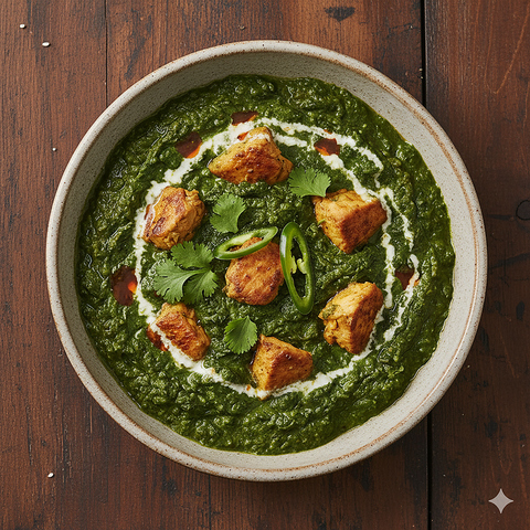 骨なしチキンをほうれん草とトマト・バタークリームのソースで煮込んだカレー