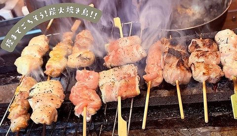 炭火のいい香りがお酒のおつまみぴったり!!外はカリっと中はジューシーなやきとりの理想的な食感です♪