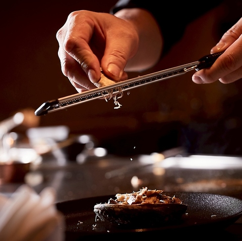 熟練シェフが目の前の鉄板で繰り広げる、圧巻のパフォーマンスは必見です。香りや音、炎の演出が五感を刺激し、お食事への期待感を高めます。店内は、横浜駅近くとは思えないほど落ち着いた、洗練された大人の空間。大切な方との特別なひとときを、ライブ感あふれるお料理と上質な雰囲気の中でお過ごしください。
