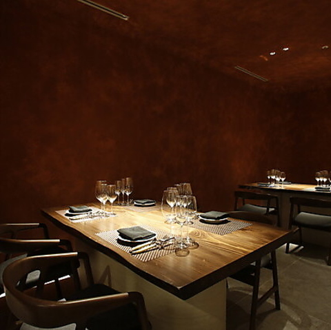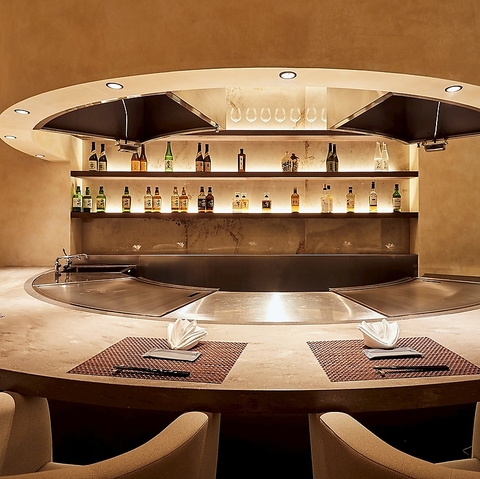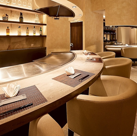 店内は、間接照明が灯るオシャレで落ち着いた雰囲気。広めに設計されたお席で、ゆったりとお寛ぎいただけます。お二人様の距離が縮まるカップルシートもご用意しておりますので、横浜でのデートにもぴったりです。上質な空間で、こだわりの鉄板焼きを味わいながら、周りを気にせず素敵な時間をお楽しみください。