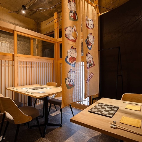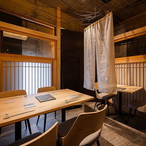 大切な会食や賑やかな会社宴会、歓送迎会にも◎プライバシーを重視した半個室のテーブル席が、当店の自慢です。周囲の視線や賑わいを気にすることなく、周りを気にせず楽しめるプライベートな空間です。落ち着いた内観とシックな照明が、特別な会食を演出します。思い出に残るひとときをお過ごしください。