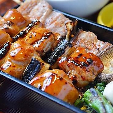創業以来継ぎ足しで作る特製タレは、素材の旨味を凝縮し絶品◎博多焼とりの定番「豚バラ」はもちろん、丁寧に下処理した鶏肉や、野菜、魚介、巻き串までバラエティー豊かにご用意しております★備長炭で香ばしく焼き上げた串は、ジューシーで至福の食感。キンと冷えたお酒のお供に、こだわりの美味しさを心ゆくまでどうぞ♪