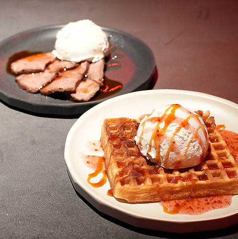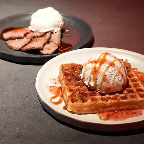 シーシャと共にお楽しみいただける当店特製のデザート、『ワッフル&グリークヨーグルト』もったり食感のグリークヨーグルトは甘さと酸味の絶妙なバランス。ふわふわのワッフルにハチミツを絡めてお召し上がりください。