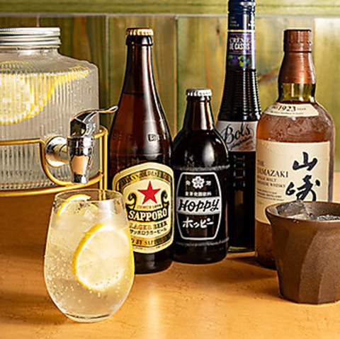 通常のドリンクメニューも、リーズナブルに楽しめる幅広い品揃えで、ご宴会や飲み会にもおすすめ!特にウイスキーは充実のラインナップで、山崎や白州もご用意しております◎