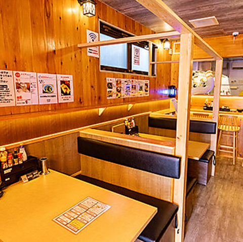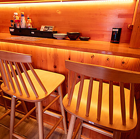 木のぬくもりに包まれた店内は、ゆったりと落ち着ける和の空間。席間を広く取ったソファー席や、気兼ねなく過ごせるカウンター席をご用意しており、様々な人数やシーンに対応可能です。まるで自宅にいるようなリラックス感の中、美味しい料理とお酒を心ゆくまでお楽しみいただけます。