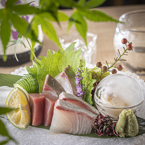 店内の生け簀から取り出す鮮魚の極上お造り!素材本来の旨みが凝縮され、格別な食感と味わいをご提供します