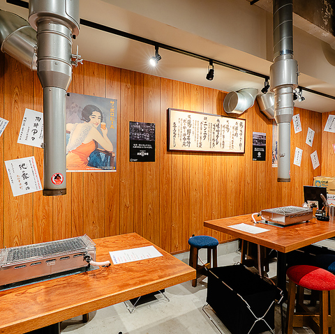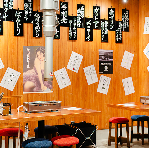 | テーブル | 20名様×1 | 【宴会や飲み会に◎】2~20名様着席可能テーブルがございます。昭和レトロな雰囲気が漂う店内は、どこか懐かしさを感じさせる大衆感あふれる空間。赤札で貼られたメニューが壁を彩り、肩肘張らずに食事を楽しめます。 |