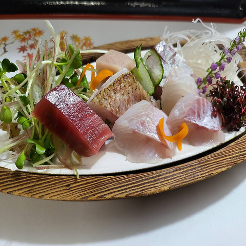 旬の海の幸を贅沢に盛り込んだ当店自慢の逸品です。新鮮な魚介類が繊細に盛り付けられた一皿は色とりどりの素材が見た目にも楽しませてくれます。レモンの酸味がアクセントとなり、素材の旨味を引き出してくれます。食材の持つ自然の味わいを大切にしシンプルながらも深い味わいを楽しめる一皿です。心地よいひとときを演出してくれるでしょう。