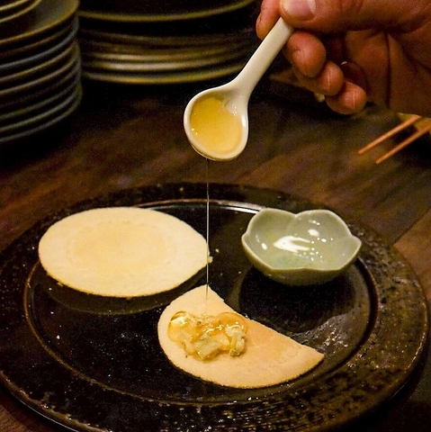 しっとりと火入れした鴨肉を香ばしくローストし、爽やかな辛味と香りの実山椒を添えました。鴨のコク深い旨みを、後味軽やかに引き締める一皿です。