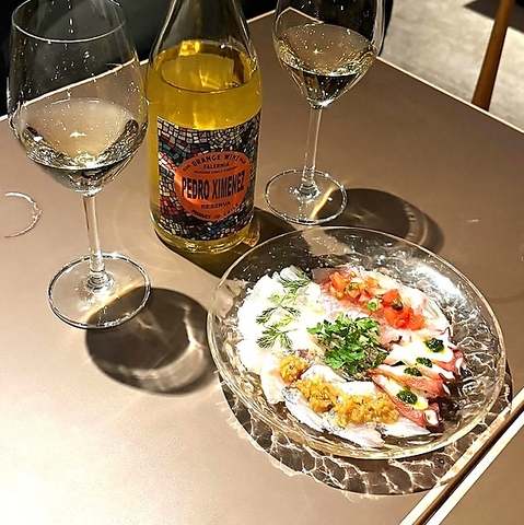 20時までにご来店の方には、"盛り合わせ"を必ずご注文いただいています。カリカリ鴨のキャロットラペ、ビーマンささみのクミンナムル、茄子とキクラゲのアラビアータ…ジャンルにとらわれない前菜たちが少しずつ並ぶ、当店の“名刺代わり”の盛り合わせ。初めての方にも、常連の方にも、最初に味わってほしい当店の看板です。