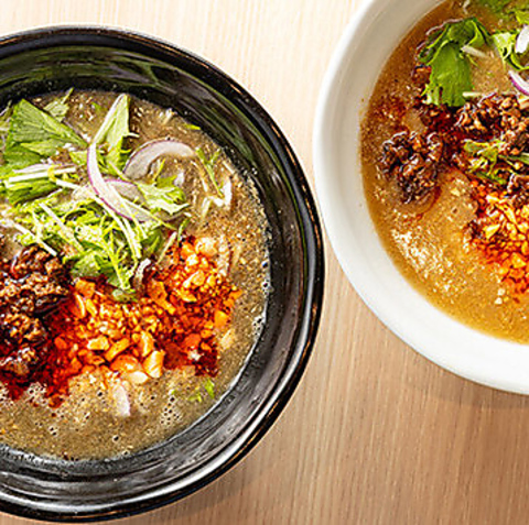 当店の担々麺は、辛さと痺れをお好みで選べるこだわりの逸品です!女性に人気の和風「白担々麺」と男性におすすめの「黒担々麺」の2種類をご用意!辛さ・痺れを無しにすれば、お子様も楽しめる優しい味わいに。汁なし担々麺もあり、〆としてはもちろん、ご飯に乗せて豪快に楽しむのもおすすめです。