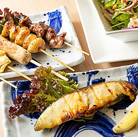 海鮮や串焼き、一品料理、サラダ、焼き鳥、デザートなど様々な種類をご用意しております。2名様以上のコースご予約で、お得に楽しめます♪