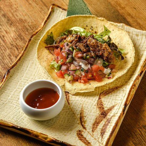 人気ナンバー1!何時間も丁寧に煮込んだ柔らかい豚肉に、絶妙なフレッシュサルサを合わせた自慢のタコス!ボリュームたっぷりなのに、背徳感なくさっぱり食べられます!