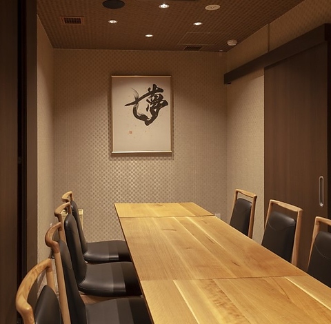 シンプルで洗練された店内です。カウンター席は目の前で料理を作る姿を見ることが出来るのも当店の魅力のひとつ!旬の食材を丁寧にさばく匠の技をぜひご覧くださいませ。