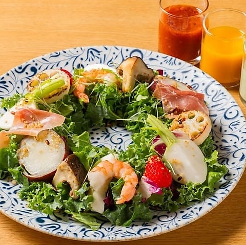 森に包まれた特別な空間で茨城の豊かな大地と海の恵みをふんだんに味わうディナーコースです。地元が誇る旬の野菜、茨城産のブランド肉や新鮮な魚介が織りなす一皿一皿が五感を満たす贅沢な時間を演出します。