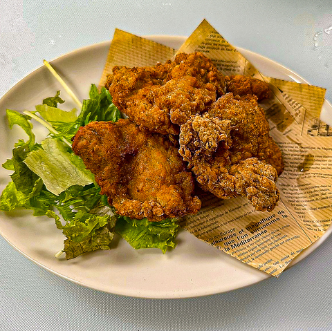外はサクサク、中はふっくらジューシー。噛むたびにあふれる肉汁とスパイスの香りが食欲をそそります。衣の香ばしさと鶏肉の旨みが絶妙に重なり、一度食べたら止まらない美味しさ。ビールにも相性抜群の、みんな大好き定番メニューです。
