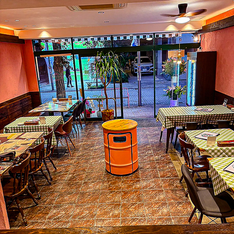 木の温もりとオレンジの壁が心地よい、リゾート感あふれる空間。陽気な音楽とともに、ゆったりとした時間を過ごせます。カジュアルなデートや仲間との食事にもぴったり。街中にいながら、まるで旅先に来たような気分に。