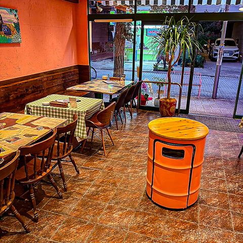 | テーブル | 4名様×5 | 木の温もりあふれるテーブル席は、カジュアルながら落ち着いた雰囲気。オレンジの壁が柔らかく照らし、自然と会話も弾む心地よさです。 |